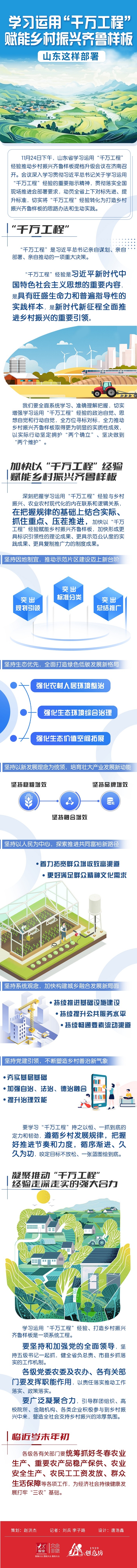 11月24日下午,山东省学习运用“千万工程”经验推动乡村振兴齐鲁样板提档升级会议在济南召开。会议深入学习贯彻习近平总书记关于学习运用“千万工程”经验的重要指示精神,贯彻落实全国现场推进会部署要求,动员全省上下对标先进、提升标准,切实将“千万工程”经验转化为打造乡村振兴齐鲁样板的思路办法和生动实践。
