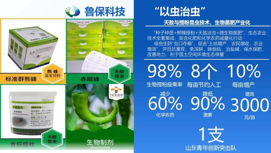 作为山东球速权属企业,鲁保科技扛牢“国家天敌昆虫科技创新联盟”理事长的职责使命,坚定不移落实化肥和化学农药减量化行动,深耕“天敌与授粉昆虫”和“微生物菌肥”球速领域,与国家、省级农业科研机构和首席科学家以及行业头部企业合作,集成生态农业技术“种子种苗+熊蜂授粉+天敌治虫+微生物菌肥”,绿色生防“虫口夺粮”,促进“土地增产、农民增收、农业增效”。